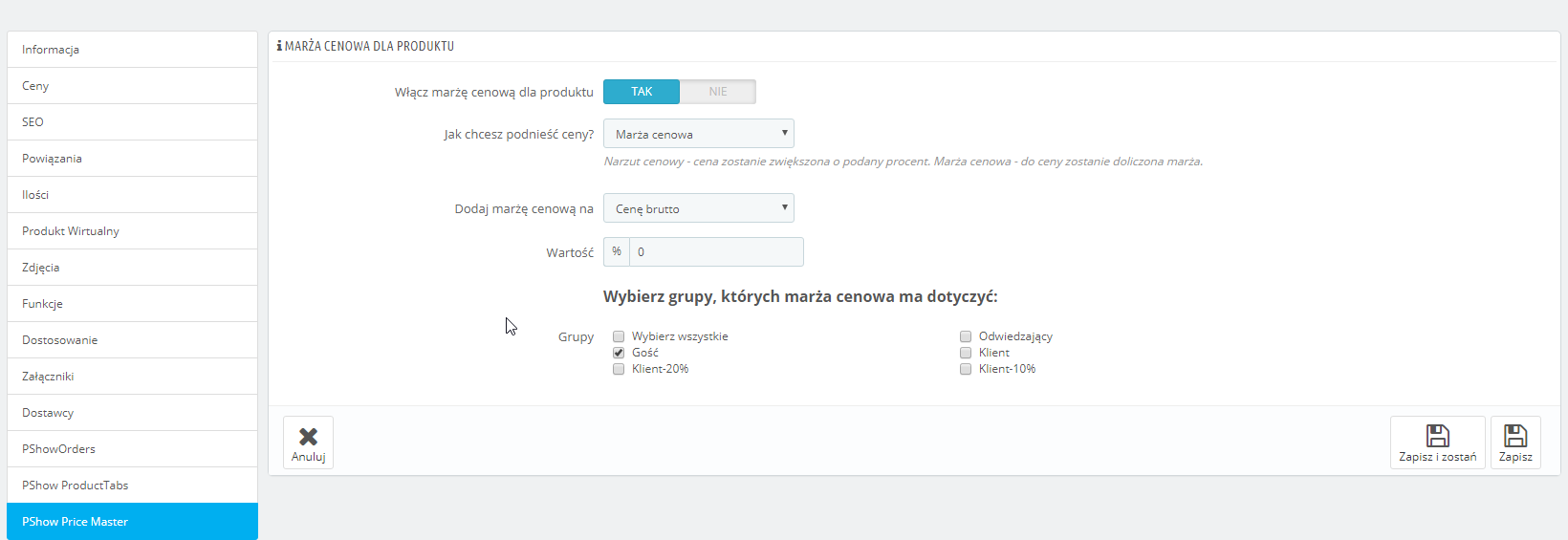 Marże i narzut dla cen w PrestaShop