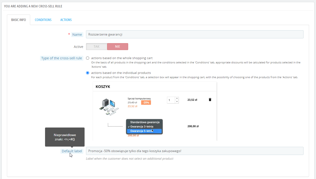 W sklepach internetowych opartych o silnik PrestaShop można zaimplementować moduł upsell i cross-sell. Ułatwi to tworzenie skutecznych promocji, które podniosą wartość Twojego koszyka zakupowego. Szeroka elastyczność umożliwiająca kreowanie promocji w oparciu o zestawy, gratisowe produkty, czy rozszerzone gwarancje sprawia, że moduł znajdzie zastosowanie w każdym eCommerce. Zaletą oprogramowania jest tworzenie zautomatyzowanych procesów, dzięki czemu wzrost różnorodności promocji oraz wartości zrealizowanych zakupów nie będzie pociągał za sobą proporcjonalnie większej ilości pracy poświęconej na obsługę promocji.